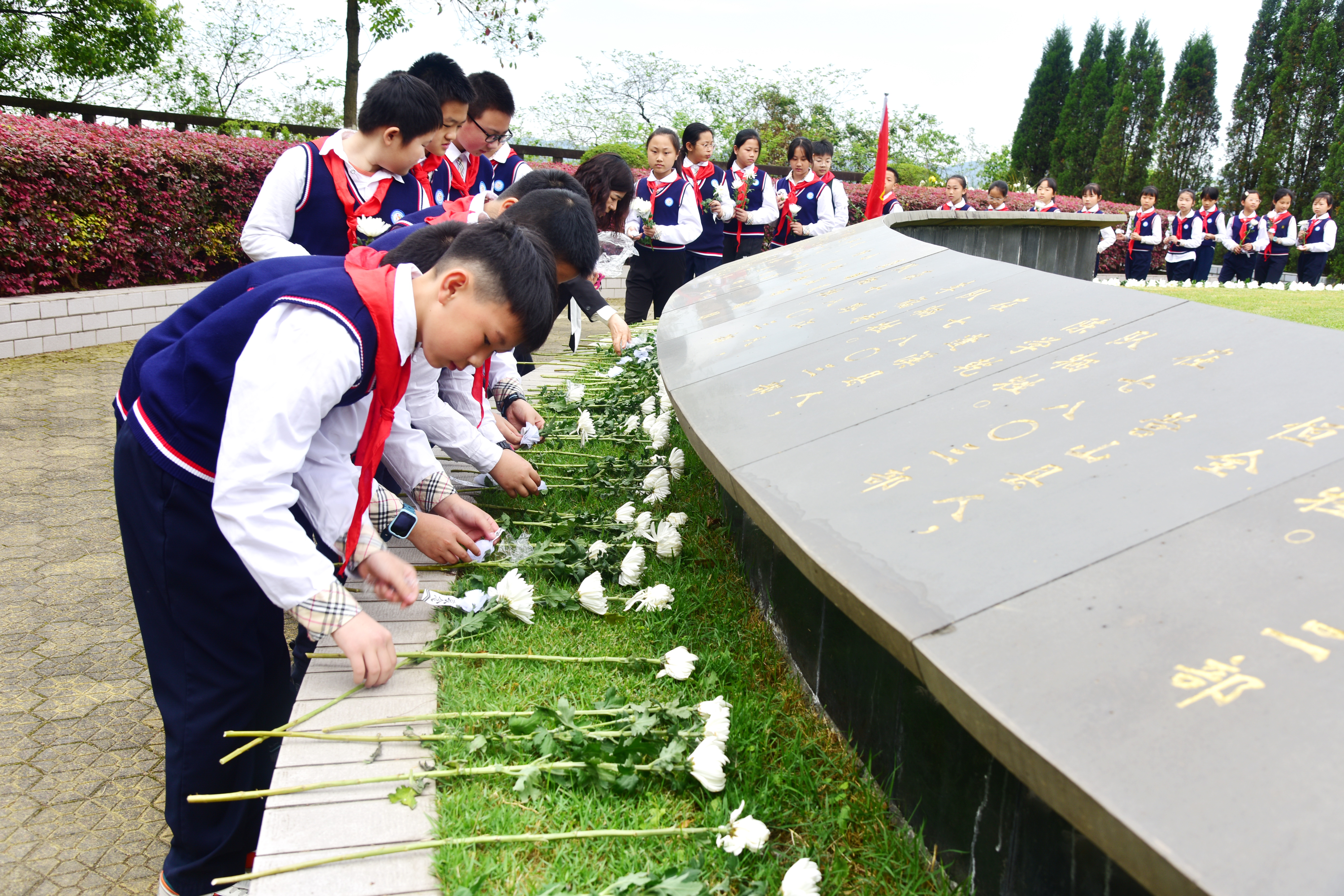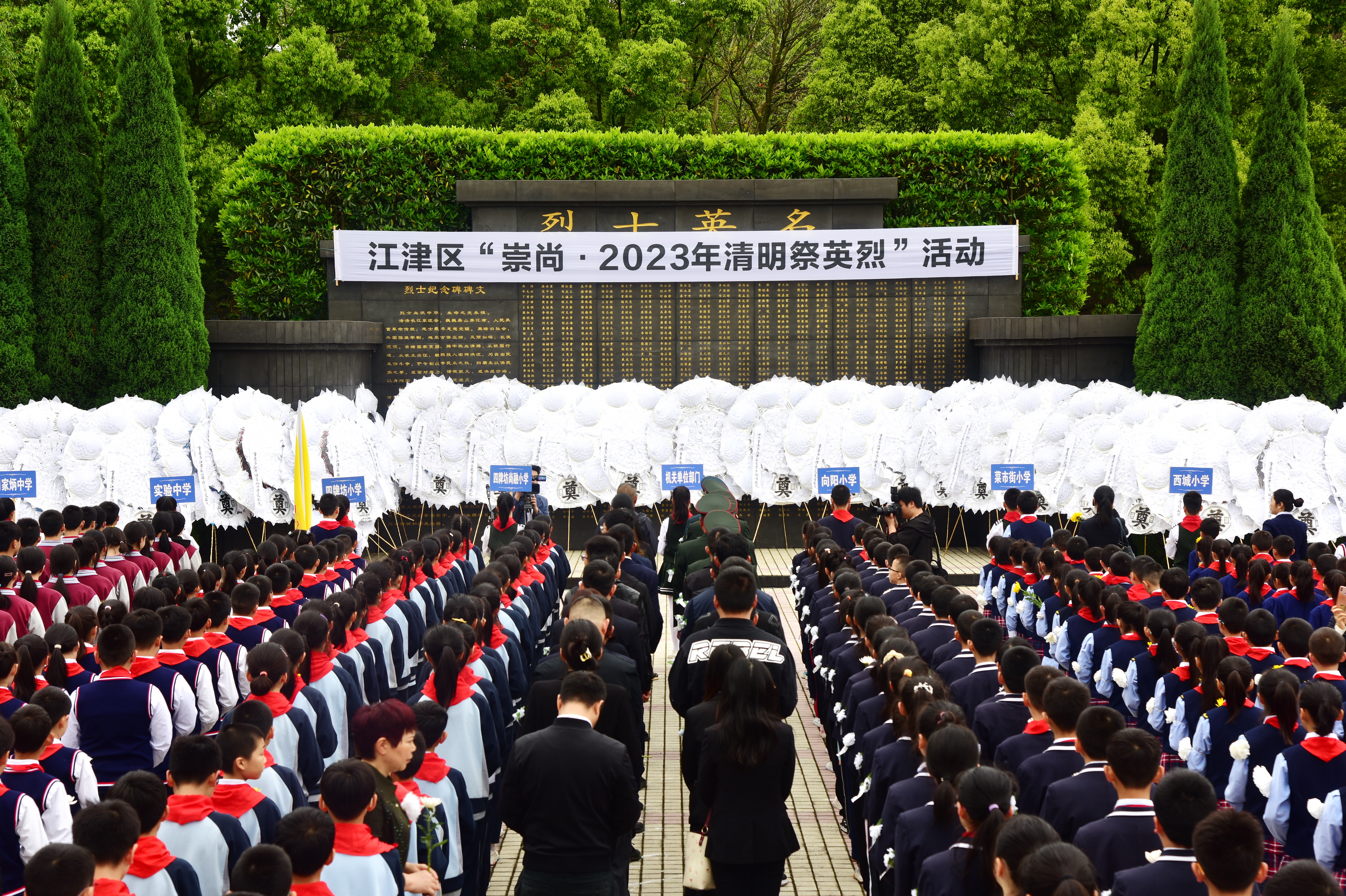 ????烈士陵園松柏環(huán)繞,鮮花簇?fù)碇沂苛陥@英名墻,哀樂(lè)回蕩。大家整齊地站在烈士陵園英名墻前,鞠躬默哀、聆聽(tīng)革命先烈英勇事跡,進(jìn)行莊嚴(yán)宣誓,江津區(qū)學(xué)生代表還發(fā)表了一番講演,號(hào)召同學(xué)們要發(fā)憤圖強(qiáng),學(xué)習(xí)先輩的愛(ài)國(guó)主義精神。儀式結(jié)束后,全體人員繞行烈士墓一周,敬獻(xiàn)鮮花。