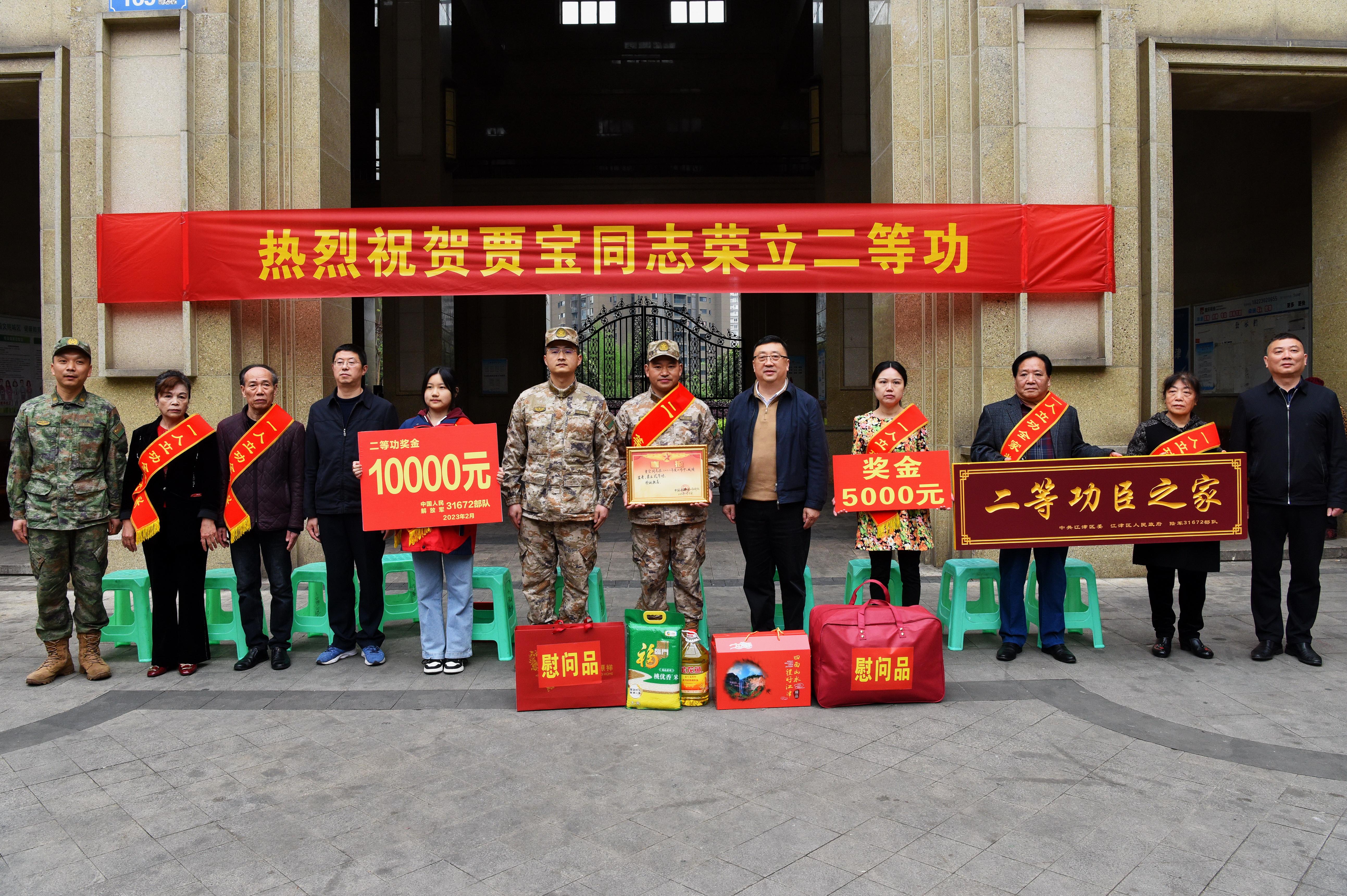 部隊立功受獎,家鄉人民光榮。送喜報現場,楊正勇為賈寶及其家人送“二等功”喜報、牌匾、慰問金和慰問品,讓軍人家屬共享這份榮譽和喜悅,并衷心感謝賈寶家人為部隊培養出一位優秀人才,希望他今后繼續發揚優良作風,爭取再立新功,為家鄉增光添彩。