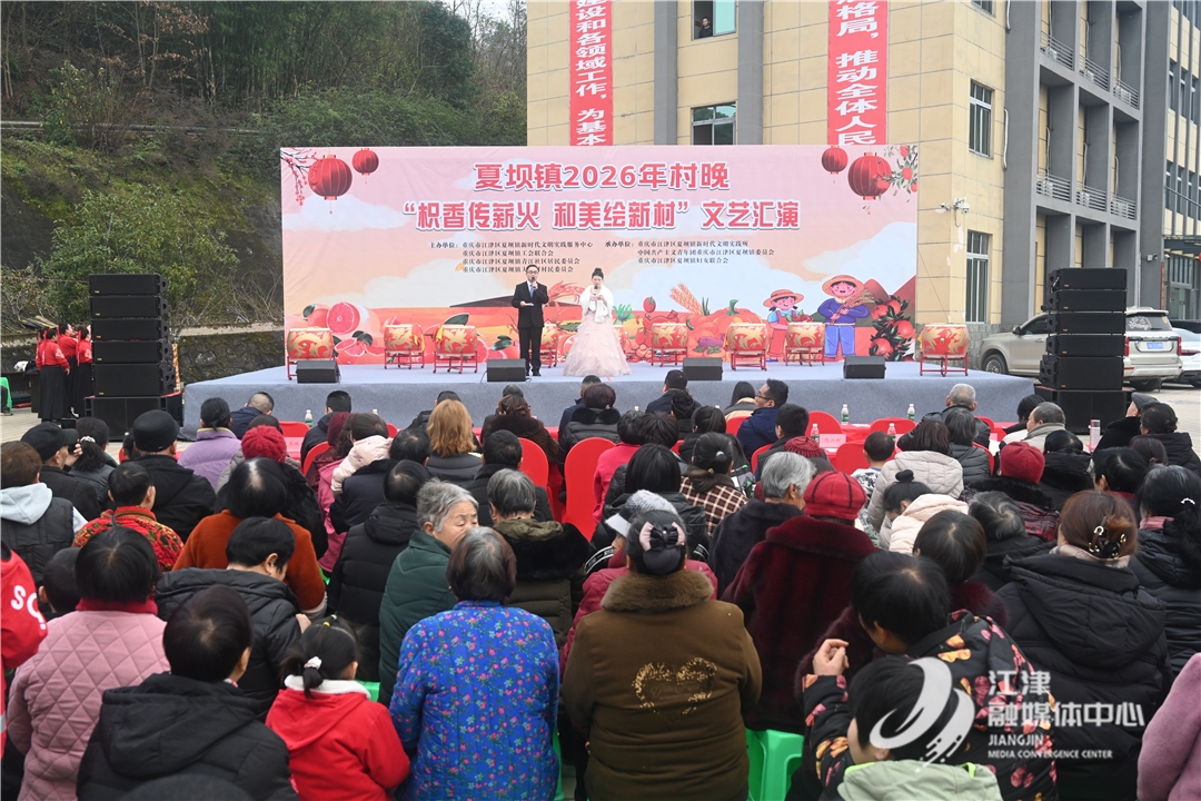 江津融媒訊(記者 張渝)春節將至,年味漸濃。2月4日,夏壩鎮2026年村晚“枳香傳薪火 和美繪新村”文藝匯演在夏壩鎮政府廣場精彩上演,為當地群眾送上了一份豐盛的精神年夜飯。