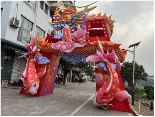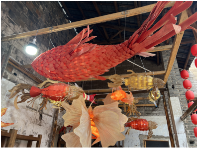 與古街的青石板路、斑駁墻面相互映襯,營造出既古樸又夢幻的氛圍。魚燈是這里的特色,它們或浮于水面,或懸于檐角,栩栩如生的造型,仿佛在訴說著歲月的故事。據了解,真武場的魚燈已有近百年歷史,每逢佳節,這些魚燈便會點亮街頭,為古街增添濃濃的年味。